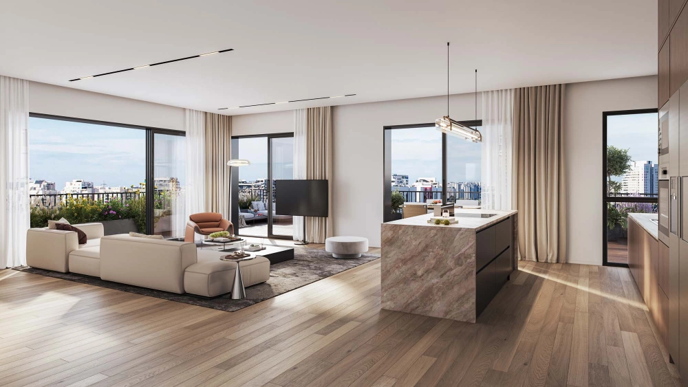 מיני-פנטהאוזים ופנטהאוזים – מרפסות שמש נדיבות ונוף עירוני ירוק.